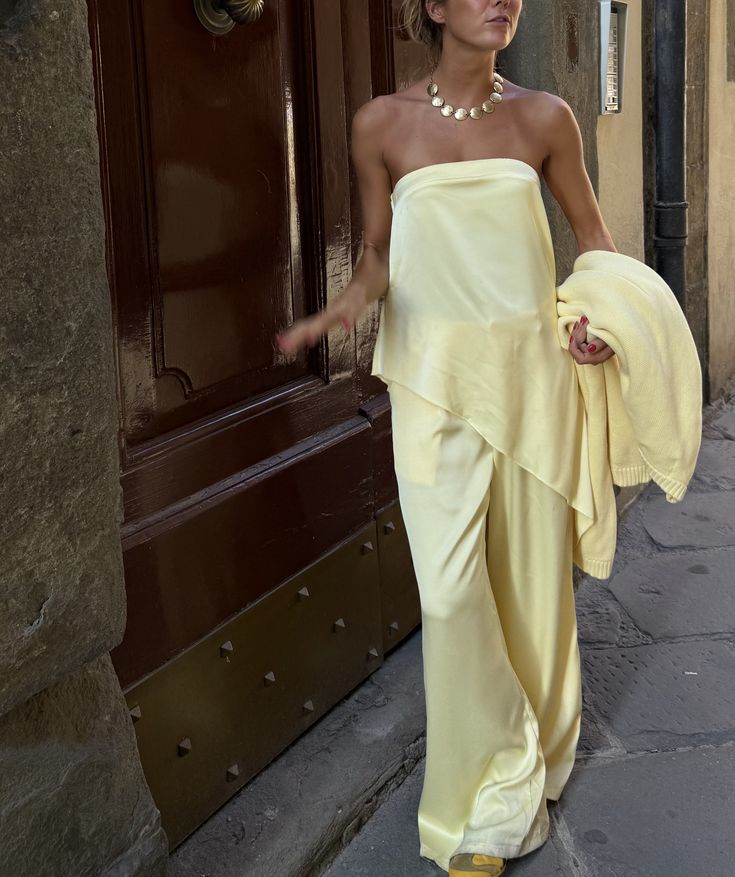 Pair with relaxed denim, tailored trousers, or layered under an oversized blazer. Keep the palette neutral for that understated, model-off-duty feel.